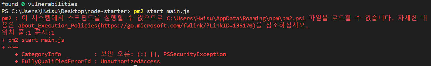 [Node.js] (vscode) pm2 : 이 시스템에서 스크립트를 실행할 수 없으므로